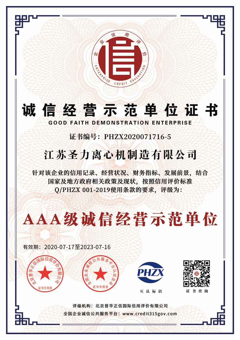 江蘇圣力離心機(jī)制造有限公司是國(guó)內(nèi)分離機(jī)械行業(yè)中主要的離心機(jī)生產(chǎn)企業(yè),對(duì)離心機(jī)的研究、設(shè)計(jì)、制造有多年的歷史,擁有齊全的設(shè)備、完善的檢測(cè)手段。公司已通過IS09000國(guó)際質(zhì)量體系認(rèn)證、ISO14001環(huán)境管理體系認(rèn)證、ISO45001:2018職業(yè)健康安全管理體系認(rèn)證和CE認(rèn)證,是江蘇省高新技術(shù)企業(yè),曾榮獲國(guó)家和地方多項(xiàng)榮譽(yù)稱號(hào)。